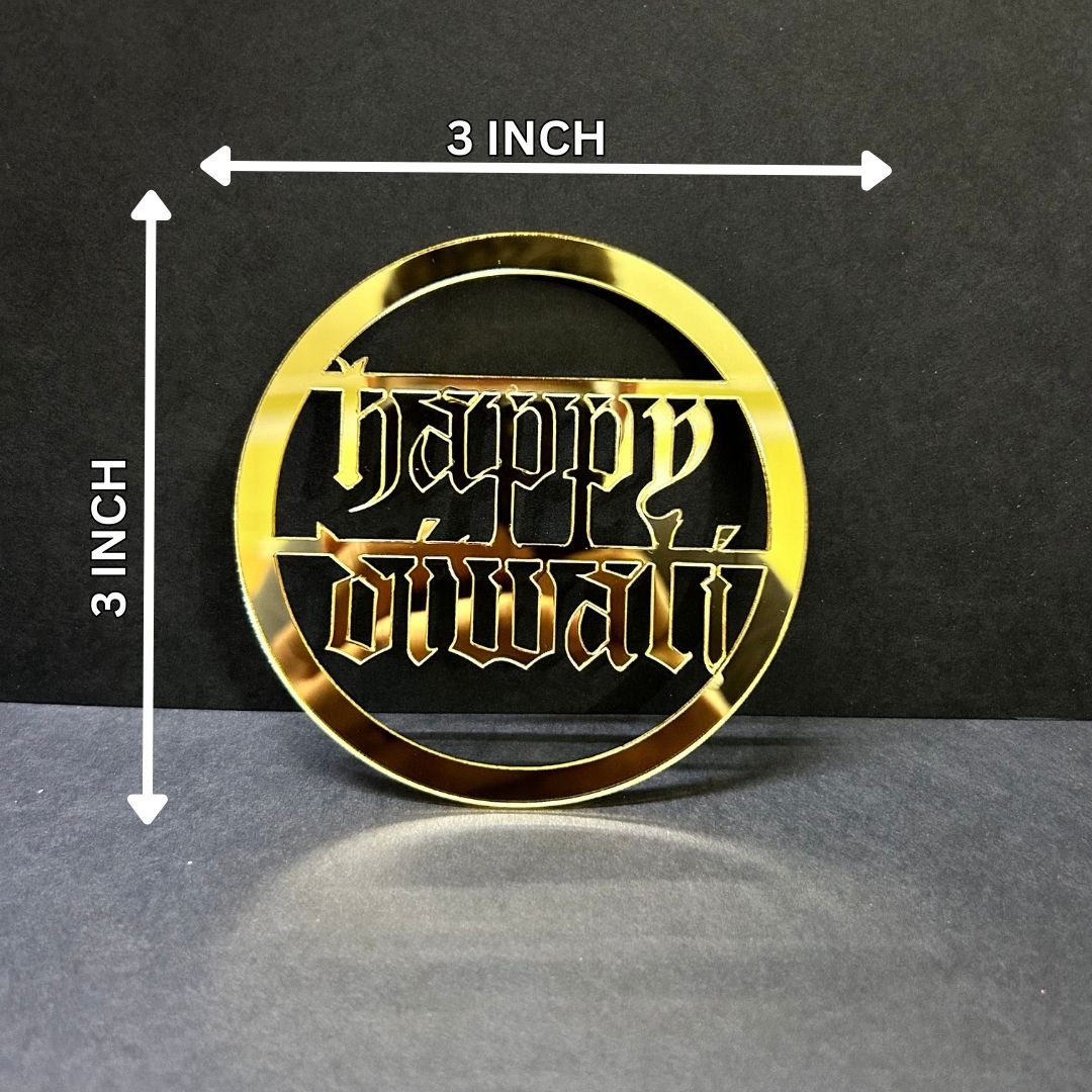 Happy Diwali #15 Golden Acrylic Cutout – 10 pcs/pack
